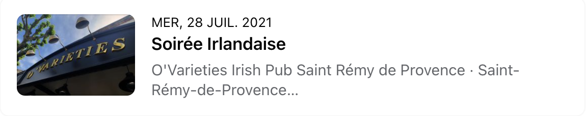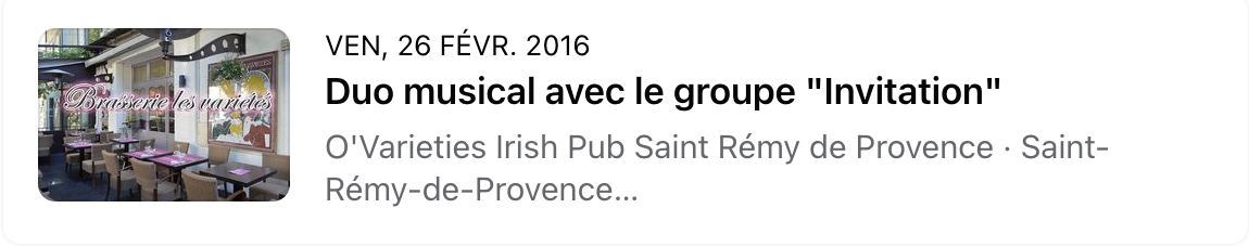 Liste automatique des événéments facebook à venir, avec lien de l'événement